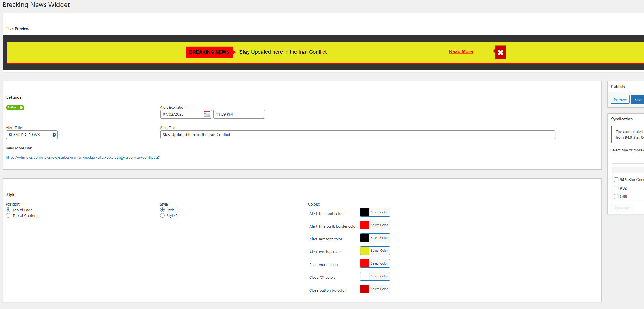 Please add back a widget like the Express Events - Breaking News Widget from the old frankly sites.... this widget let us quicky syndicate an alert/news across all of our sites. I can accomplish a similar thing with the ticket and a syndicated blog post but it's not as user friendly.